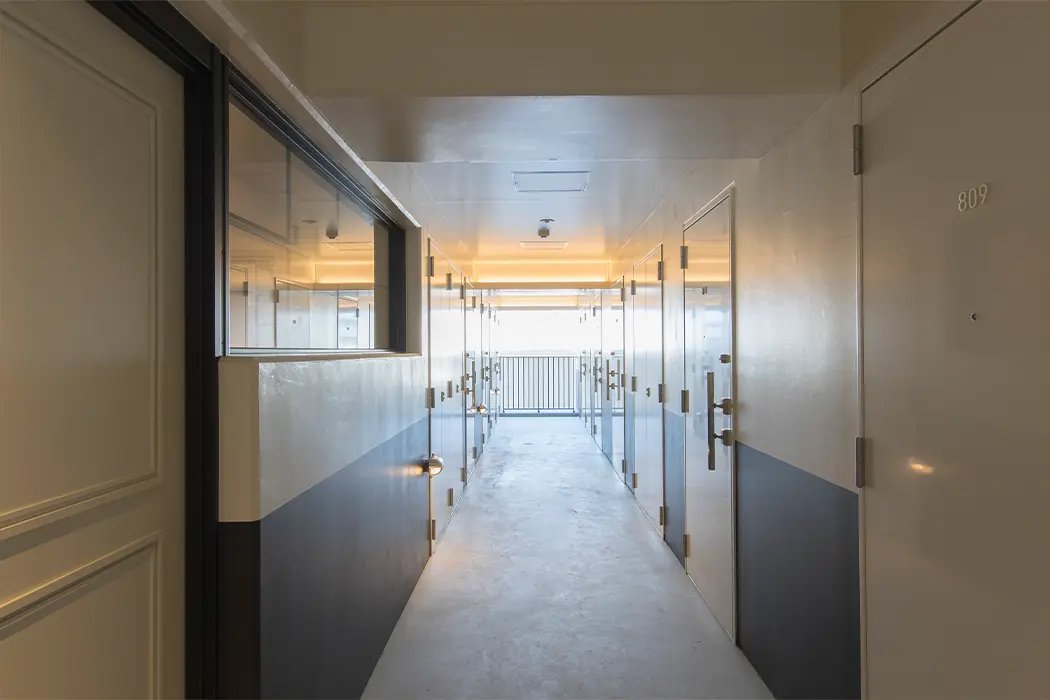 付属備品照明、デスク、イス、ベッド台(マットレス要購入)、壁面収納、ハンガーラック(バトン)、シューズラック、Wi-Fi、光回線インターネット