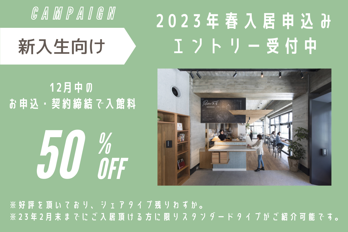 23年2月末までにご入居頂ける方に限り、入館料を半額にさせて頂きます。クリスマスなどの寮内イベントもあるので、…